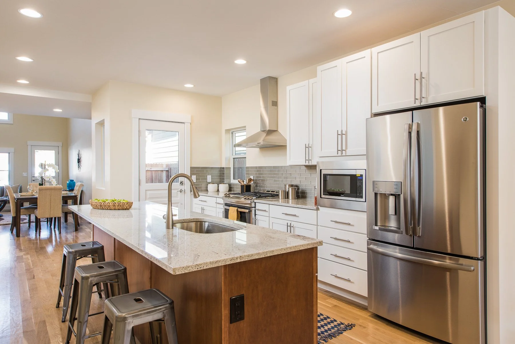 The Arapahoe Residence is a restoration and an addition to a tiny historic structure located in the historic Curtis Park Neighborhood in Denver. It was designed to preserve the original structure and add on to the rear to provide a modern open floor plan. The design creates a vaulted space for the living and dining rooms in the tiny historic structure and then adds a modern kitchen and family room which opens to the rear garden space. The design is playful in working with the historic front structure and uses materials, scale and form to add an addition that enhances the original structure while creating the space for a more modern urban home. We worked with the neighborhood groups and the landmark historic district to create a lovely lovely modern home within the historic neighborhood of Denver.