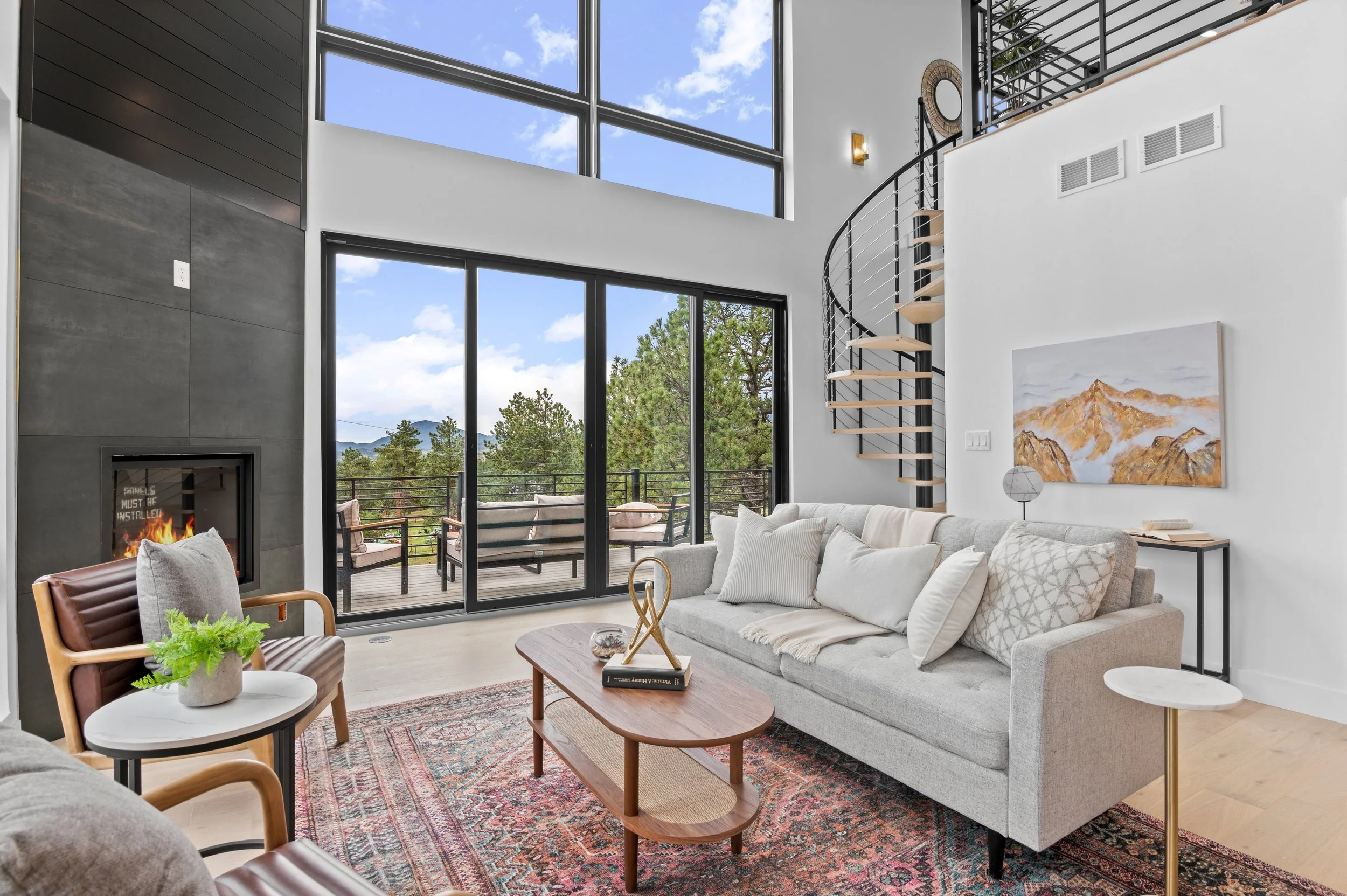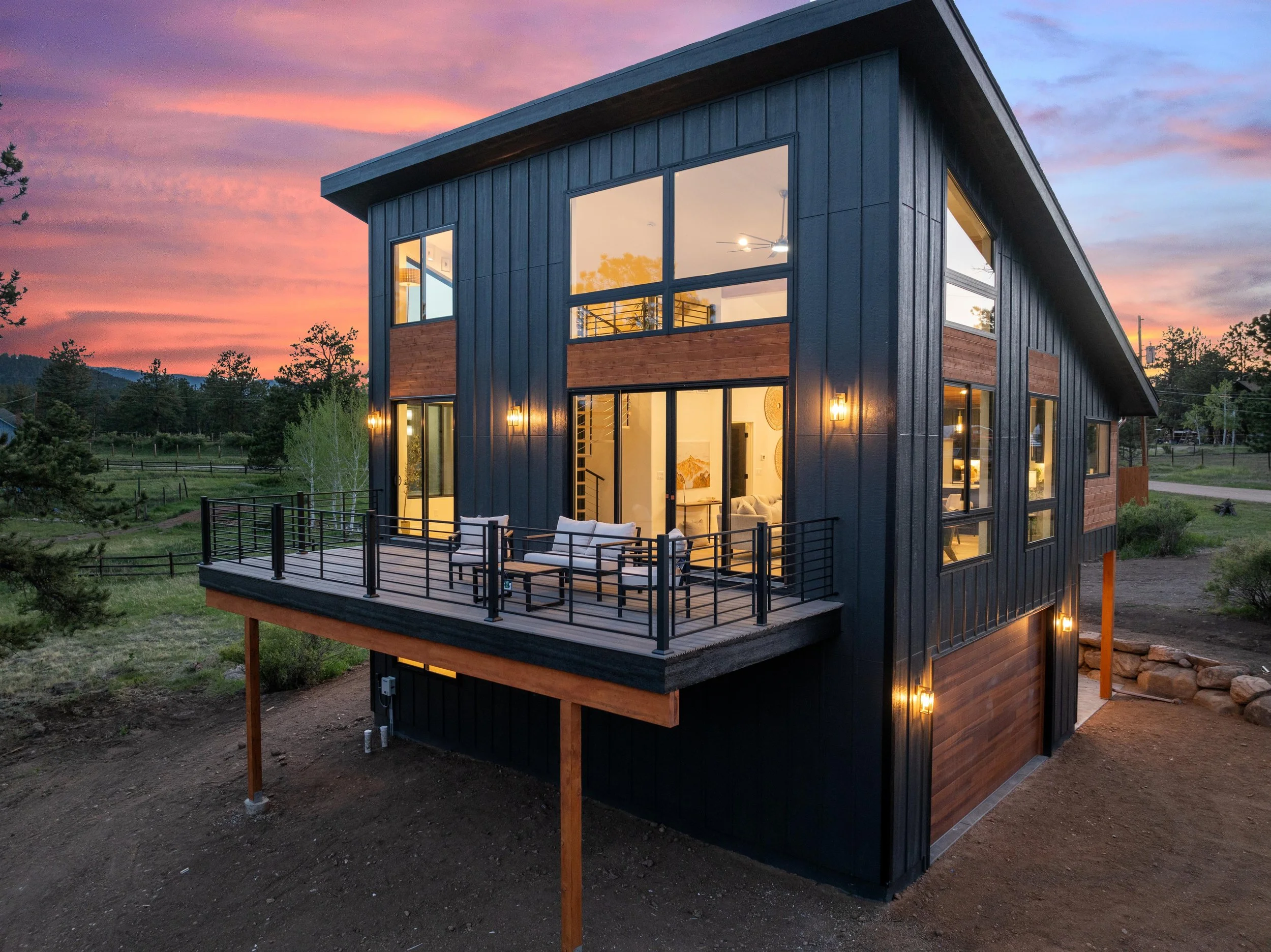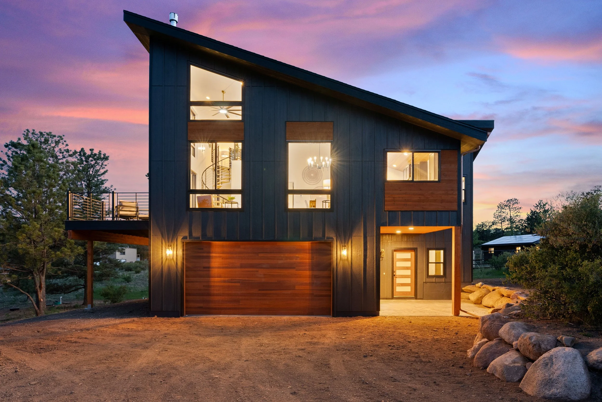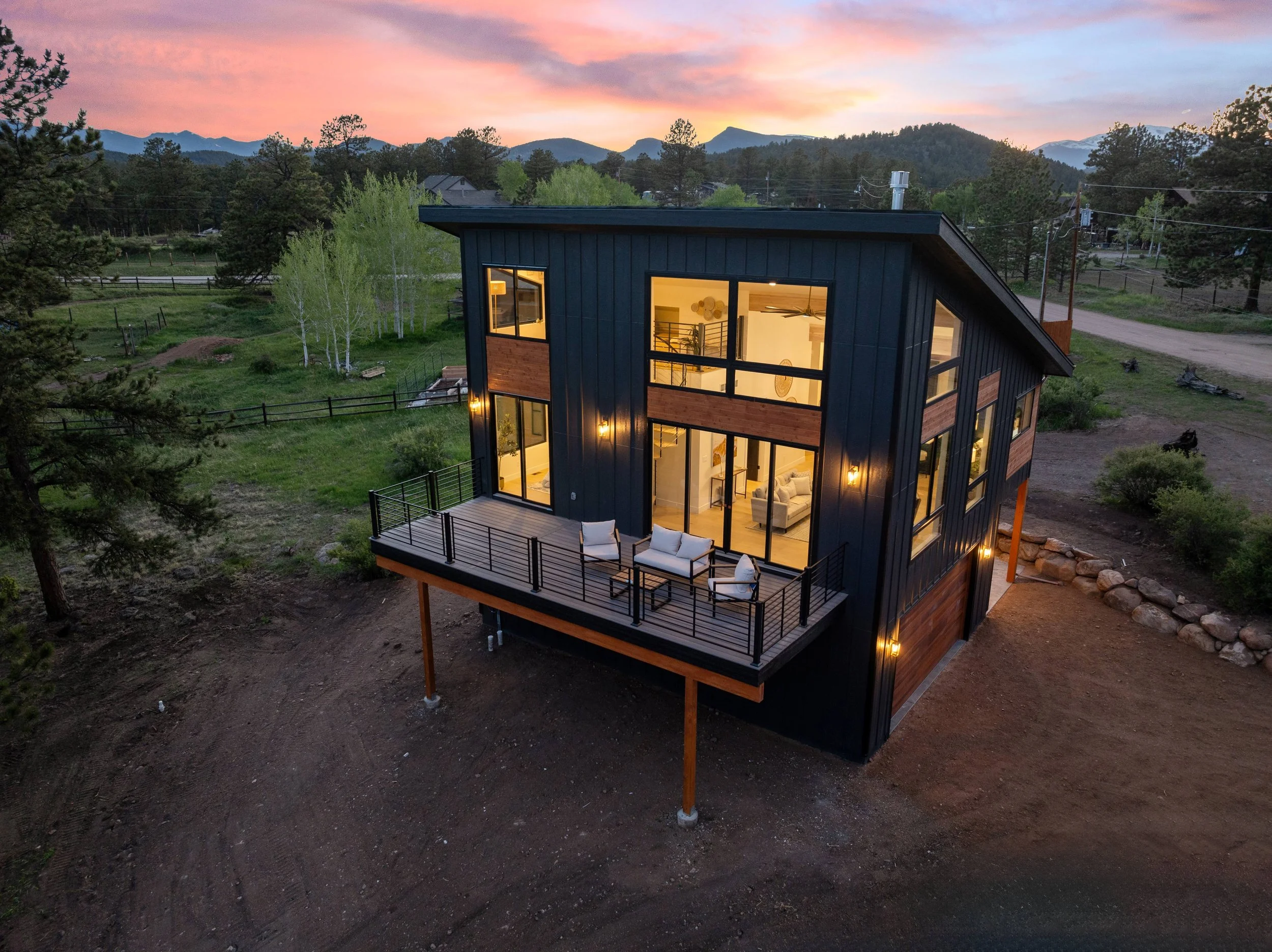 We provided a mountain modern design for the Star Lane Residences in the mountains near Bailey, Colorado. We designed the main living spaces on the second level to capture the mountain views. We created a lofted design to give an expansive feel for a modest house size. The living, dining and kitchen spaces have an open layout with a loft office space. The bedrooms, bathrooms and utility rooms are tucked into the smaller height spaces but flow nicely off the main living spaces..