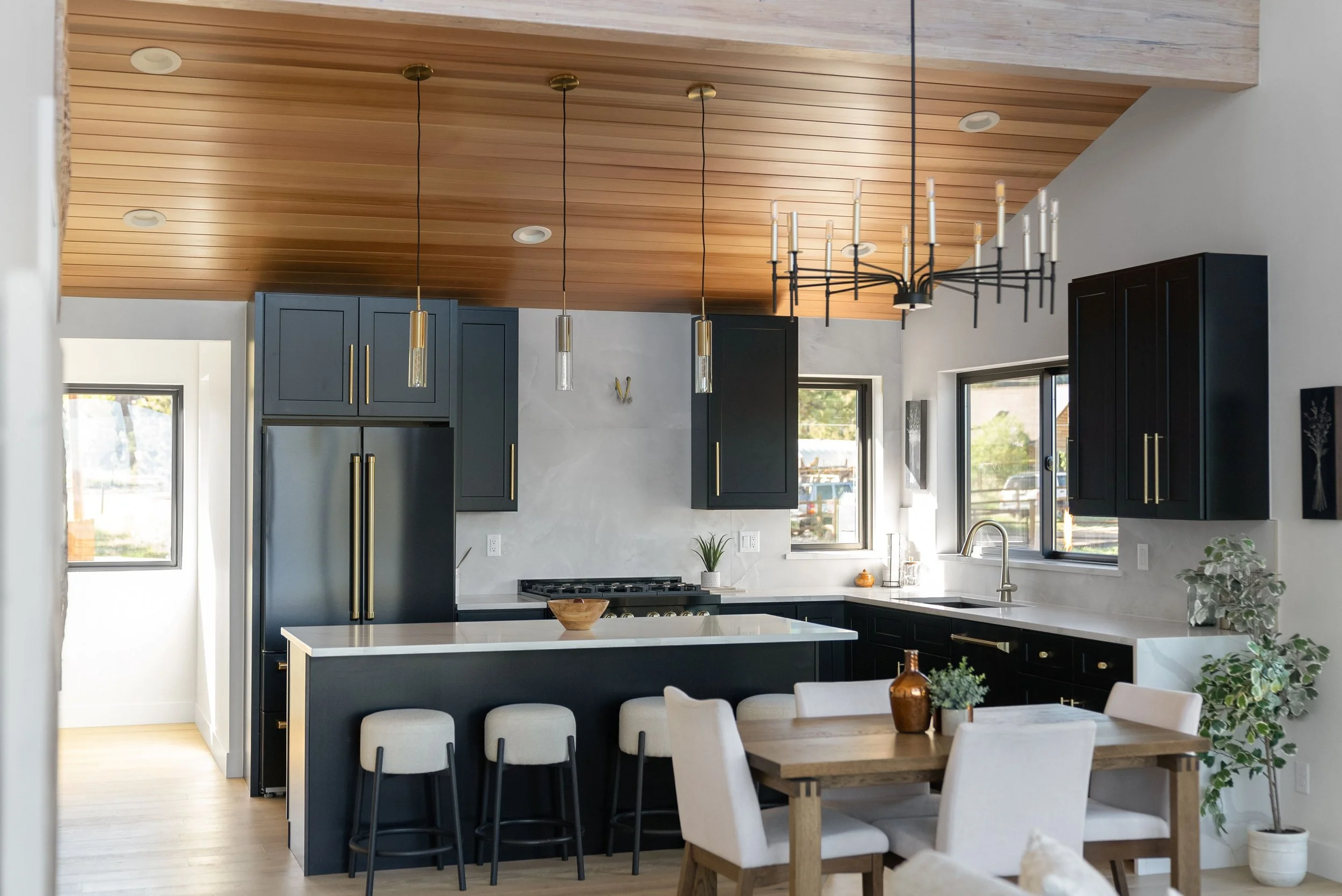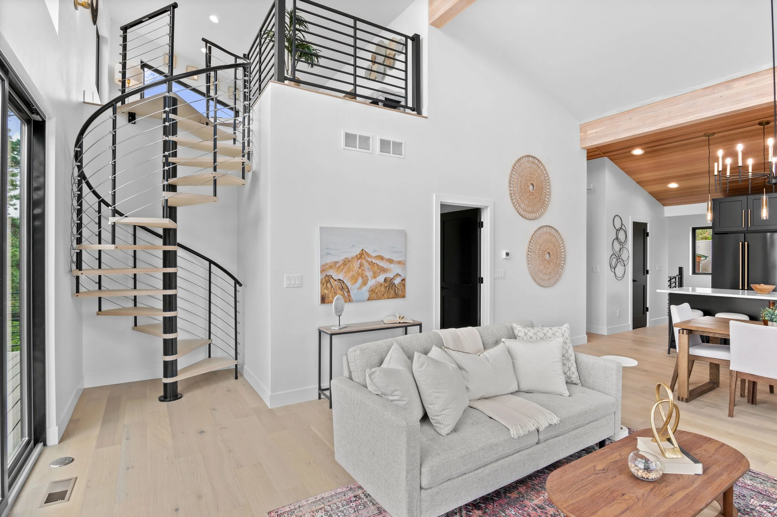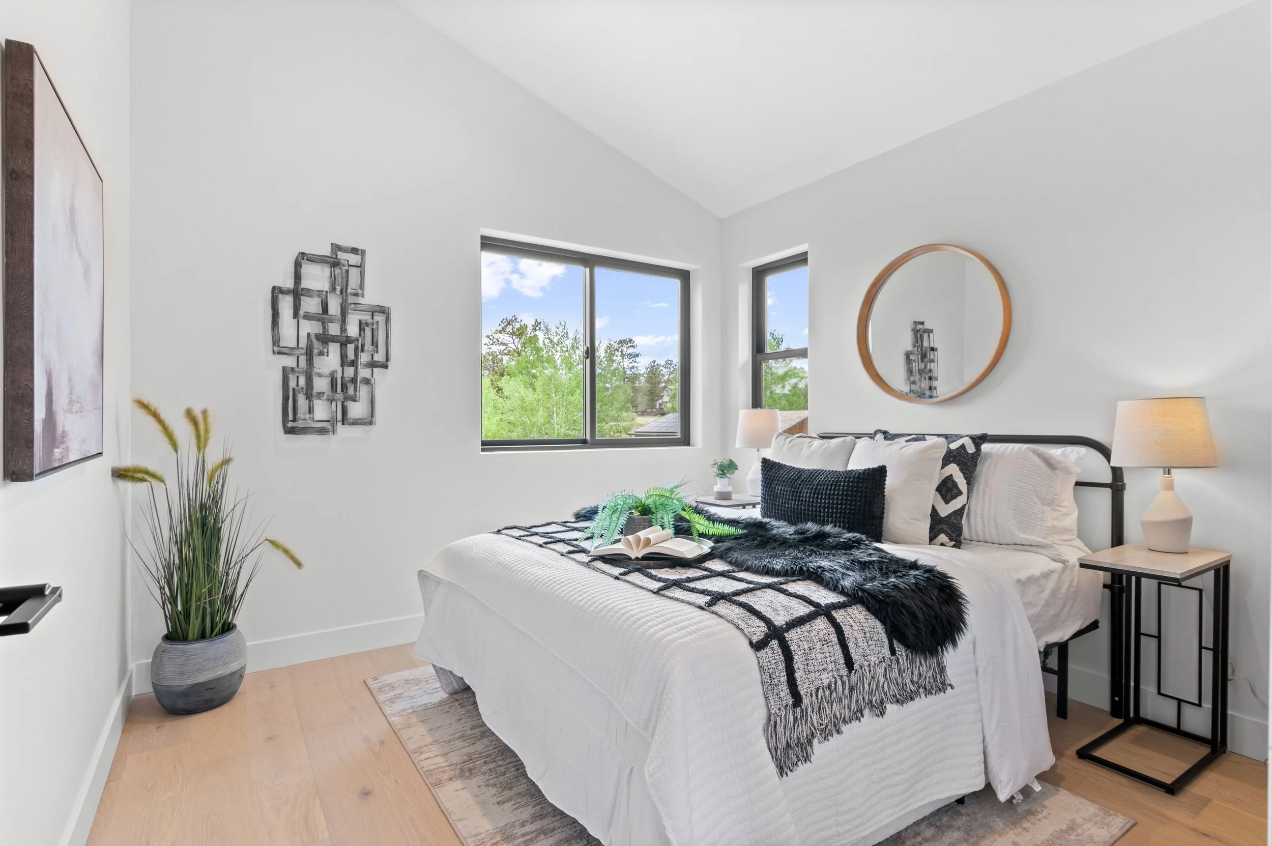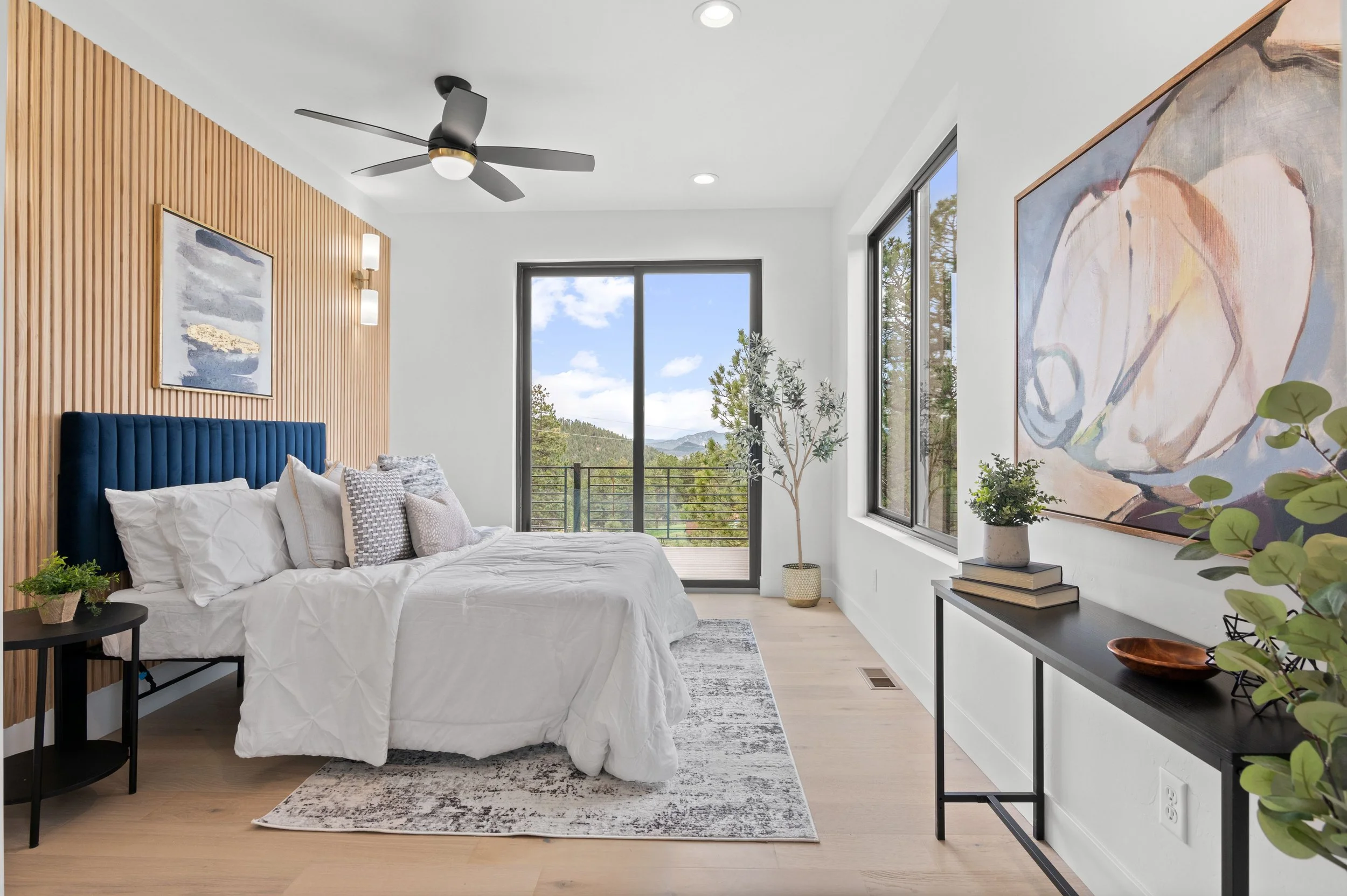 We provided a mountain modern design for the Star Lane Residences in the mountains near Bailey, Colorado. We designed the main living spaces on the second level to capture the mountain views. We created a lofted design to give an expansive feel for a modest house size. The living, dining and kitchen spaces have an open layout with a loft office space. The bedrooms, bathrooms and utility rooms are tucked into the smaller height spaces but flow nicely off the main living spaces..